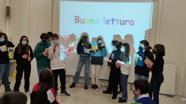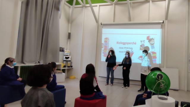 I ragazzi delle classi 2^B e 2^D della Scuola Secondaria di I grado “N. Festa” in occasione della settimana di #ioleggoperchè , hanno incontrato i bambini della classi 4^A e 4^B della Scuola Primaria Minozzi per leggere e commentare insieme ai più piccoli alcuni passi scelti da libri letti precedentemente sia a scuola che individualmente. Durante la lettura sono state proiettate immagini significative create appositamente per i libri letti. I bambini hanno partecipato con grande entusiasmo e alcuni libri hanno suscitato curiosità e destato meraviglia. Alla fine della giornata i ragazzi hanno regalato libri e fumetti per creare una piccola biblioteca di classe. Lo scopo delle prof. Ornella e Tiziana e delle maestre Carmela e Flora è stato quello di farli riflettere sull’importanza della lettura, uno strumento indispensabile per costruire già da piccoli un futuro migliore.