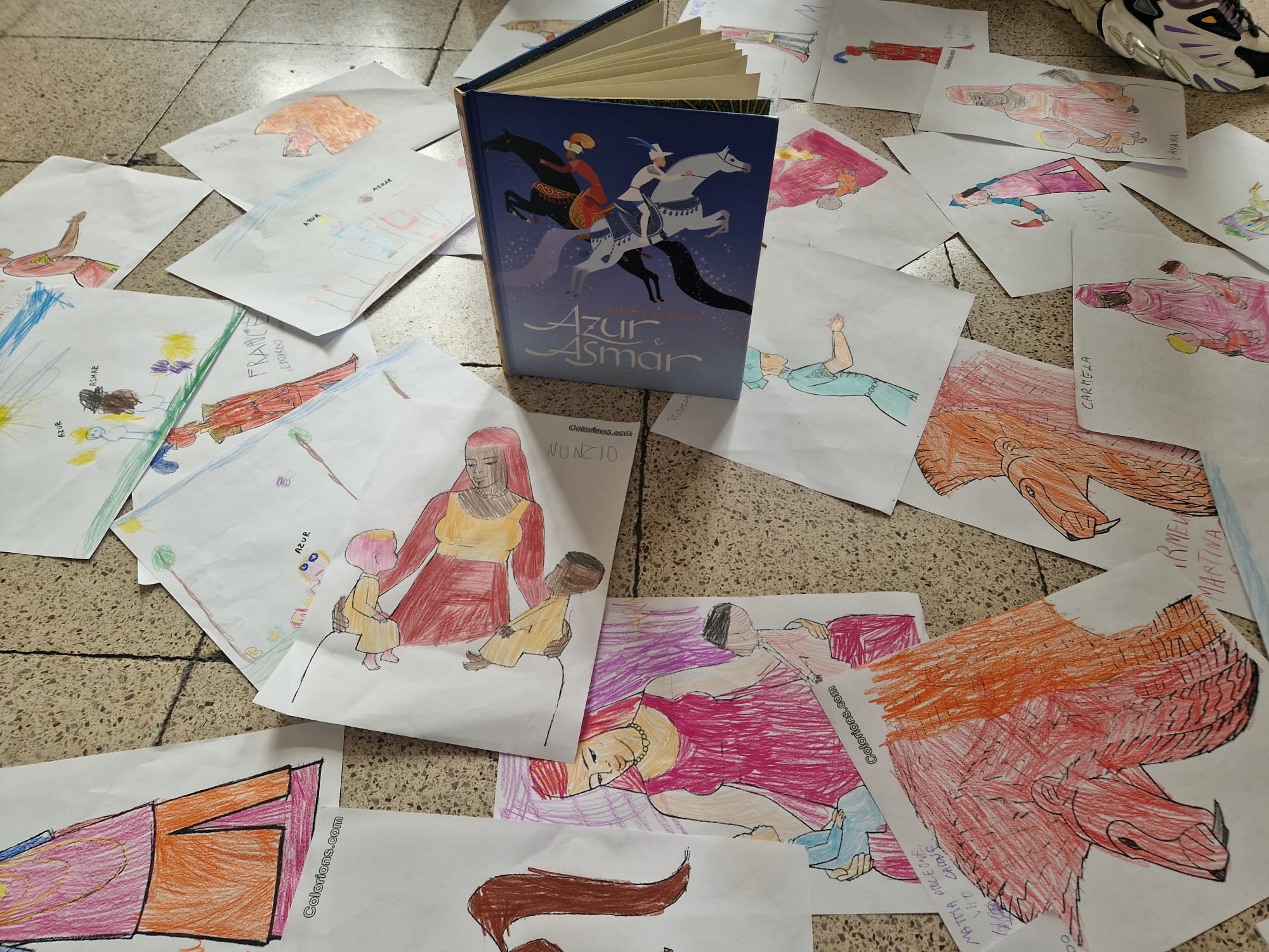 “Azur è biondo con gli occhi azzurri, mentre Asmar è bruno e ha gli occhi neri”…dal libro di Mihel Ocelot Azur e Asmar.Oggi si conclude il progetto continuità che ha avuto come tema l’educazione interculturale. Gli alunni della classe 2^A hanno accolto i bambini del terzo anno della scuola dell’infanzia del plesso Minozzi con una lettura animata del libro di M. Ocelot e un laboratorio grafico-pittorico.