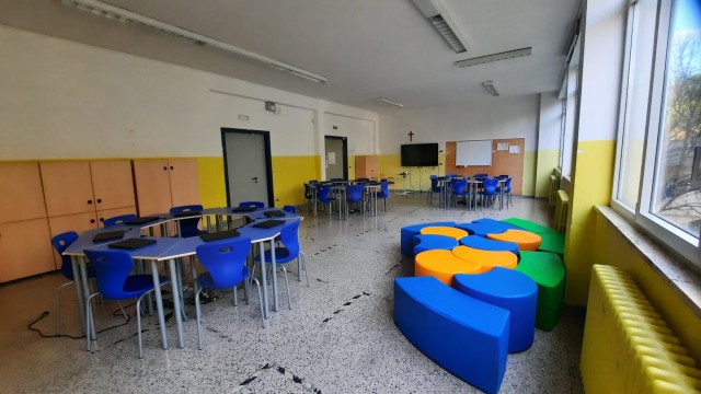 Strutture: Aula Multimediale-Materie Umanistiche – Laboratorio scientifico (STEM) – Laboratorio artistico – laboratori di sostegno – Spazio innovativo – – Biblioteca – Biblioteca digitale – Aula di pianoforte – Aula di Chitarra – Aula di Flauto Traverso – Aula di Tromba – Aule mensa – Aula conferenze – Sala teatro – Palestra – Cortile e campetto interno – Sala professori – Presidenza – Vice Presidenza